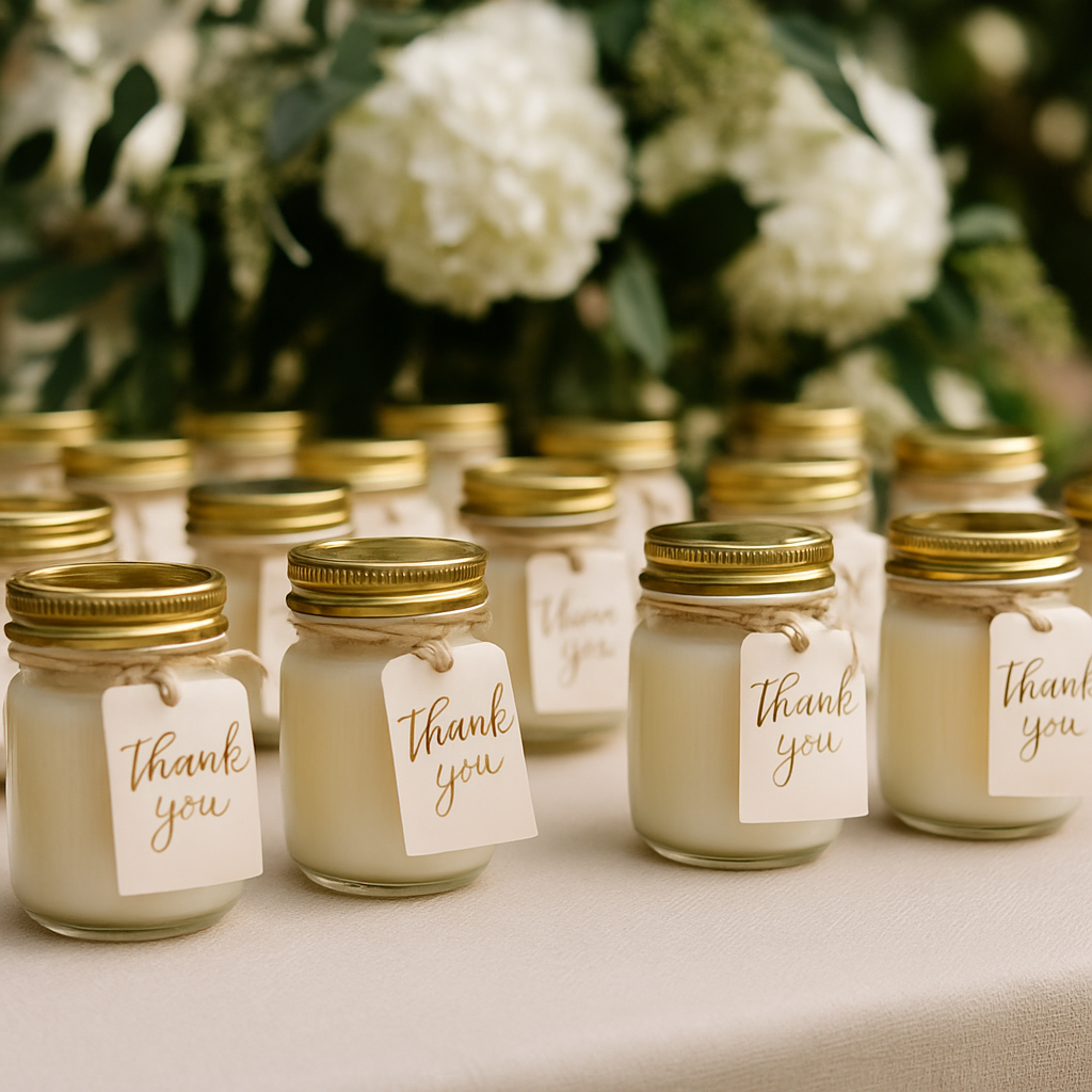 Whether you’re planning a wedding, shower, birthday, or corporate event — our 4 oz personalized jars make the perfect party favor. Hand-poured, customizable, and unforgettable, they’re a gift your guests will actually take home and use.